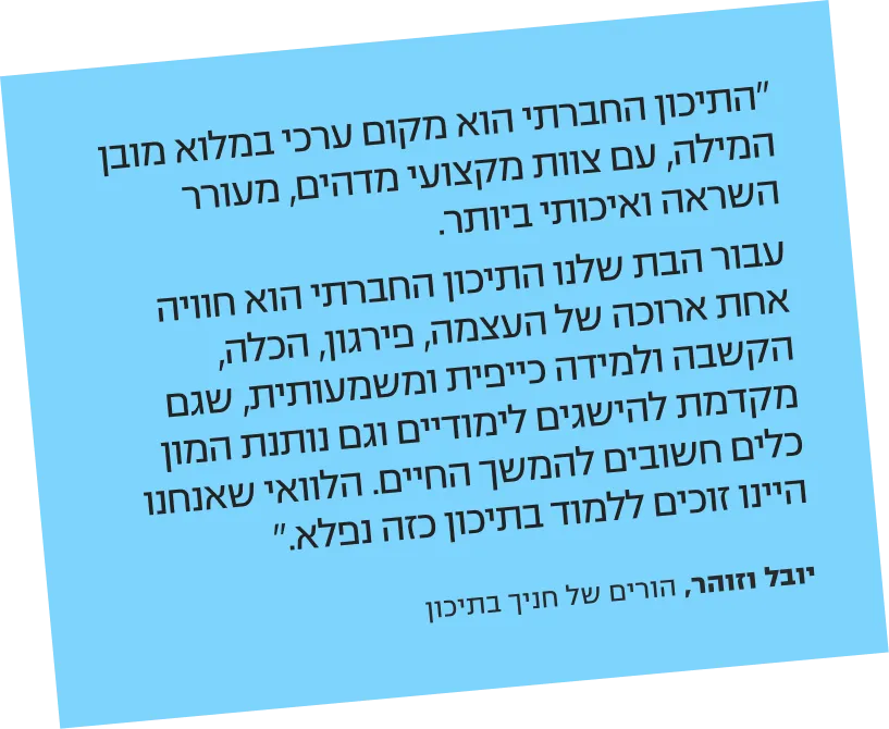 התיכון החברתי תל אביב-יפו הוא מקום ללמידה דרך חוויה, מפגש ויצירת שינוי חברתי
